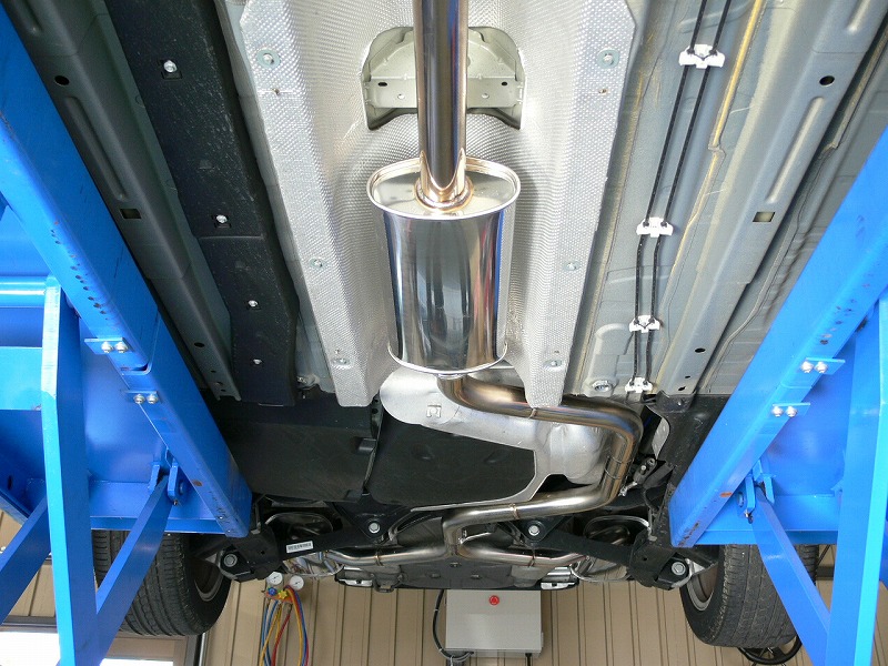 本製品はテストを重ねた結果、出口だけでは性能的に優位性が少なく、ただのうるさいマフラーになってしまうため出口と中間マフラーのセット販売となっております。